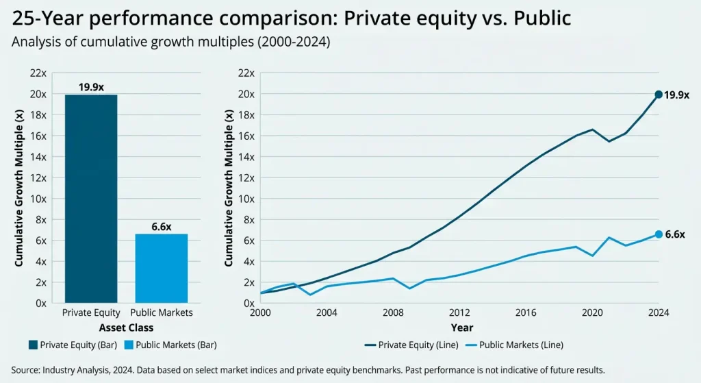 Interestingly, while illiquidity is often framed as a drawback, global private equity firm Permira finds that the illiquidity and long-term time horizon inherent in alternatives drives significant outperformance relative to public markets. This differential gets larger the longer the time horizon is extended.